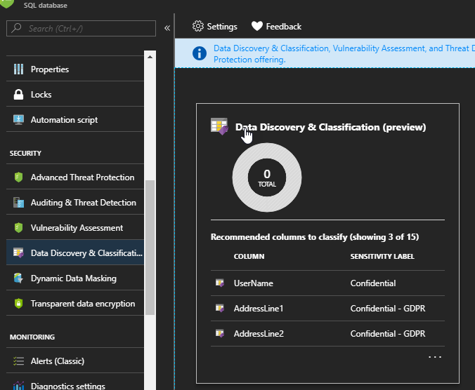 SQL Information Protection now includes new capabilities to help identify, classify or monitor data stored in your SQL databases.
