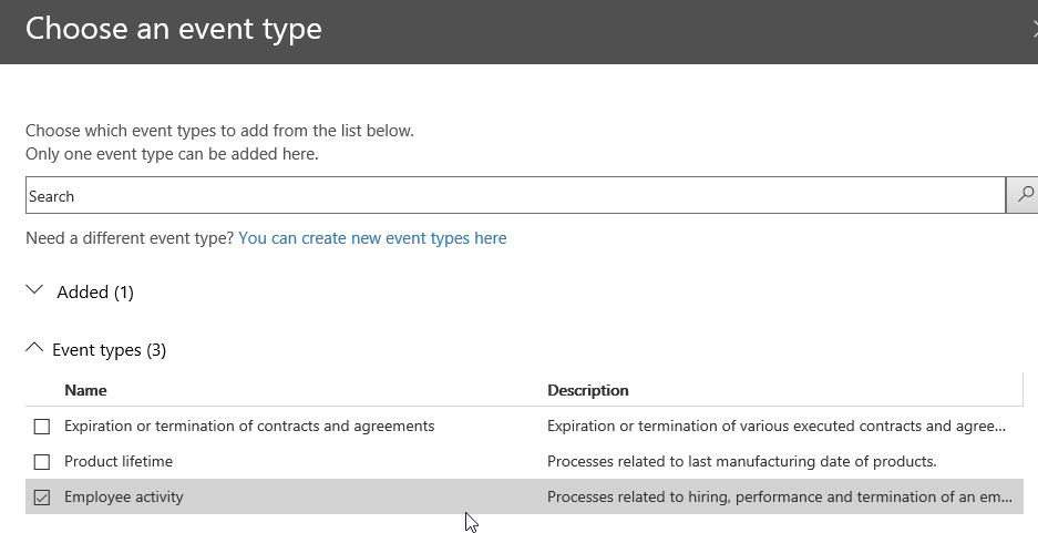 To take advantage of this new retention “event based”, you need to first create a label, publish/auto-apply it, define the event to trigger the retention