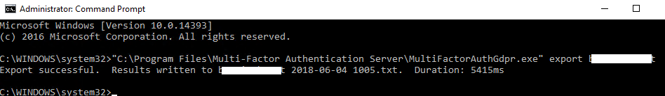 - The GDPR tool (MultiFactorAuthGdpr.exe) is available in the C:\Program Files\Multi-Factor Authentication Server folder to