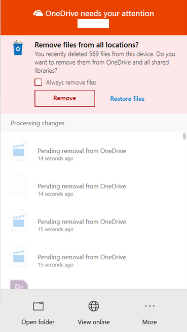 When mass deletion is detected by the OneDrive client, end-user will be prompted to confirm it.