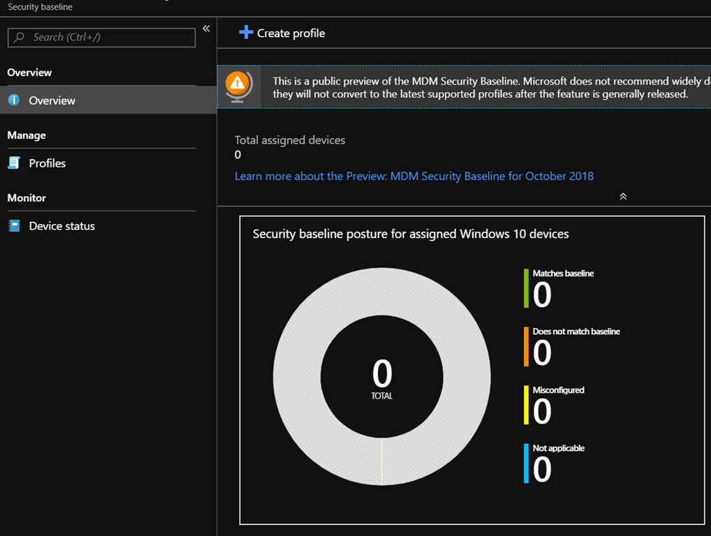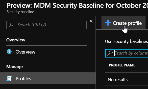 First thing is to create a baseline profile by either accessing the Overview blade or the Profiles blade and use the Create profile