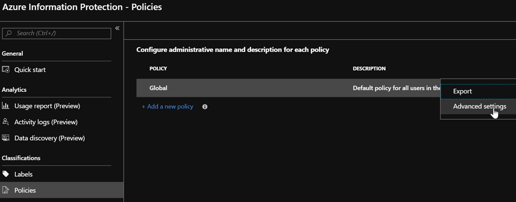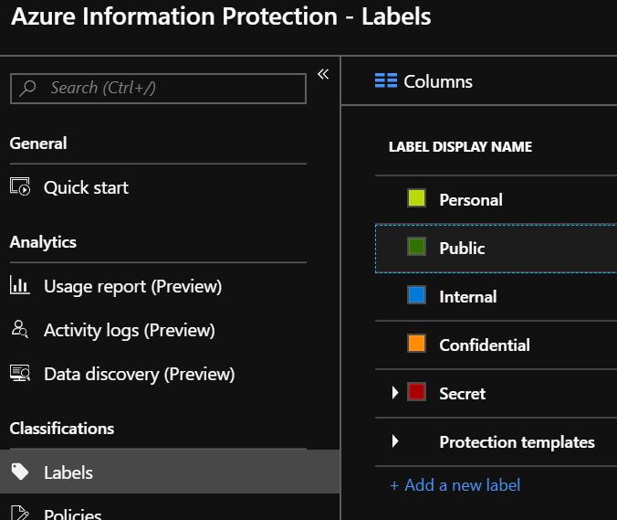 To enable S/MIME protection with AIP, logon to your Azure portal (https://portal.azure.com/) and reach out the Azure Information Protection configuration blade