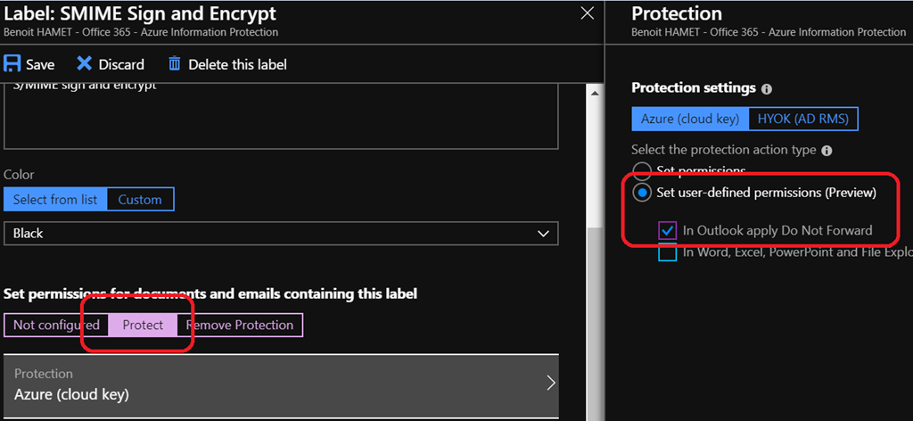 NOTE if the label you selected for the S/MIME protection is configured to apply AIP RMS protection, S/MIME will replace it only on Outlook.