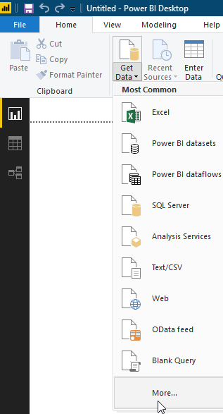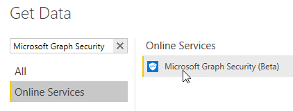 Then start Power BI Desktop and get the data from the Graph Security using the Get data\more from the ribbon