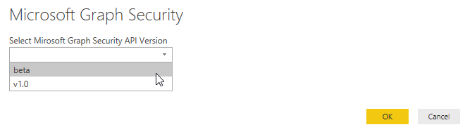 You select the Graph Security API version to use; at this stage it seems it does not really matter which one you choose