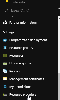 Then for access each subscription you need to enable the provider and access the Resource Providers blade from the Settings section
