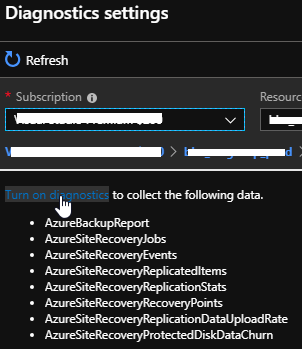 Click on Link to Diagnostic Settings and turn on diagnostics