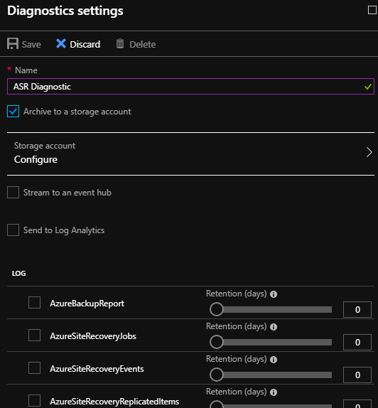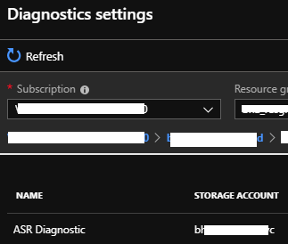 Once completed you should then see the diagnostic/report settings and the storage account you configured