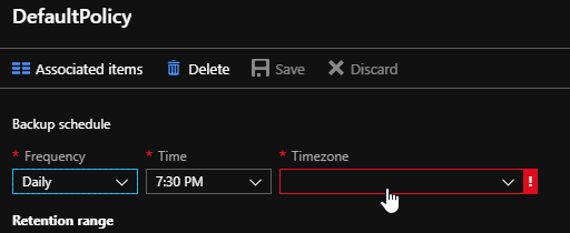 The next time you update or create an Azure Backup policy you will need to set the time zone for this policy.