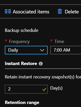 The default value for the retention period for instant restore is set to 2 days but you can define anything between 1 to 5 days.