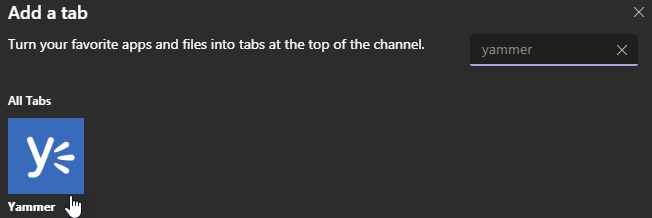 Microsoft Teams is now allowing you to add a new tab to a Yammer group.