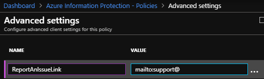 To add the option to report an issue when end-user is using the Azure Information Protection client, you need to add the following key and value