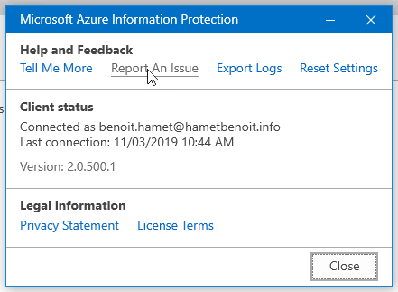 Azure Information Protection – Report An Issue (version: 2.0.500.1)