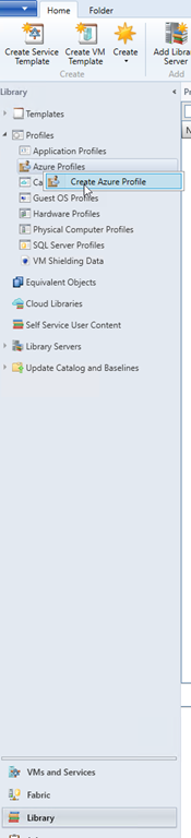 So, open the SCVMM console and reach the Library workspace to right click on the Azure Profiles section (available below the Profiles main section) to choose Create Azure profile