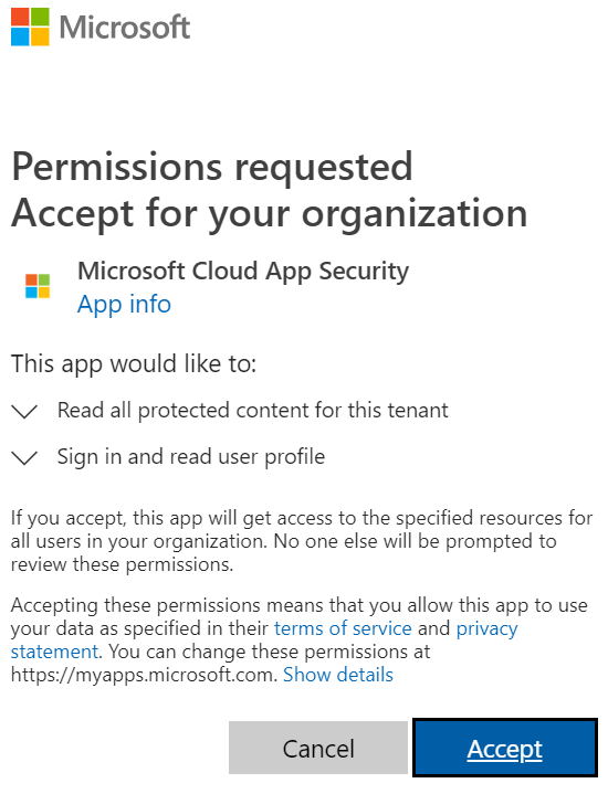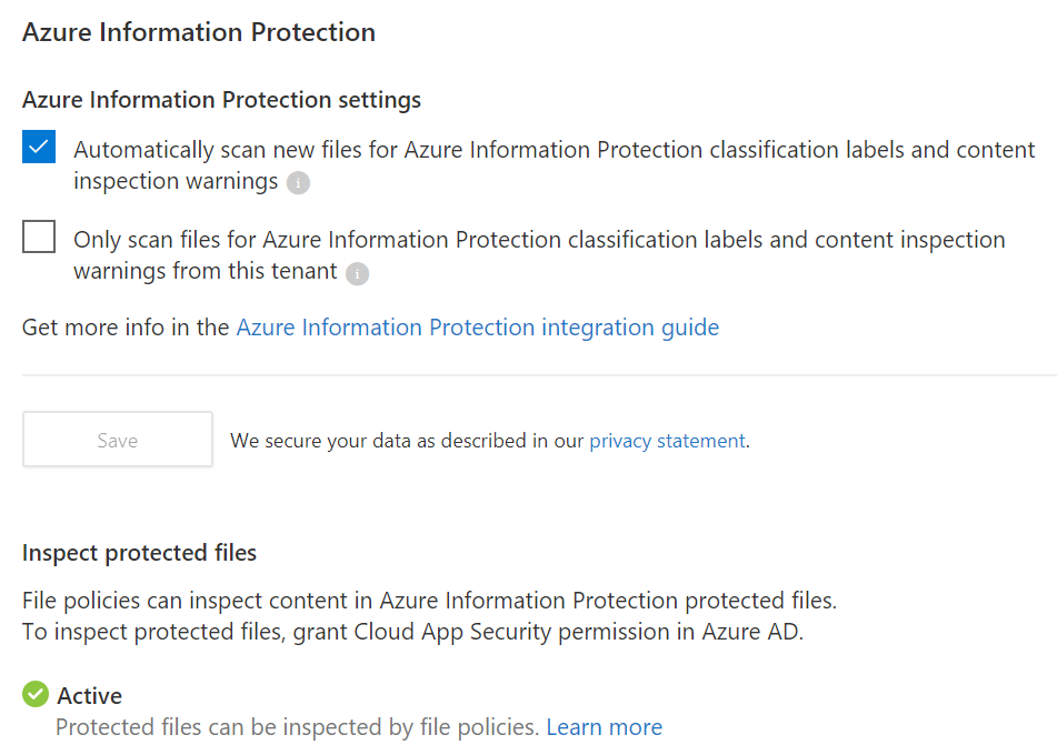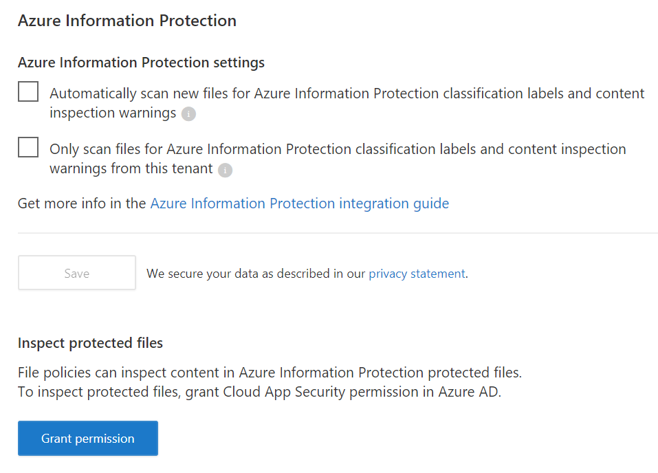 To integrate Azure Information Protection with Cloud App Security you need to grant permissions to MCAS.