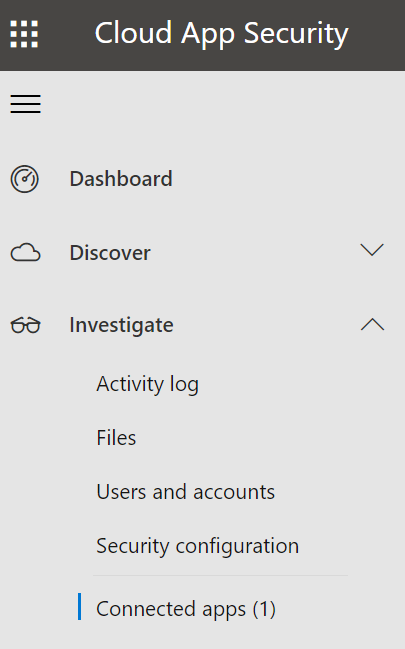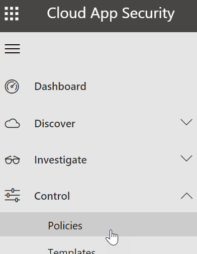 NOTE you may have to connect MCAS to Office 365 first by accessing the Investigate\Connected apps configuration blade and select Office 365
