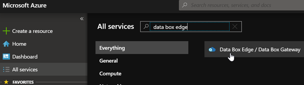 To provision your Azure Data Box Gateway connect to your Azure portal and search for data box edge or click on the link http://aka.ms/databox-edge to get directly to the Data Box blade