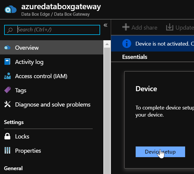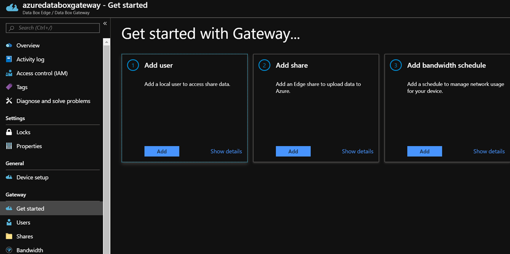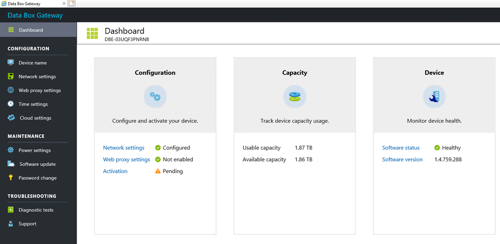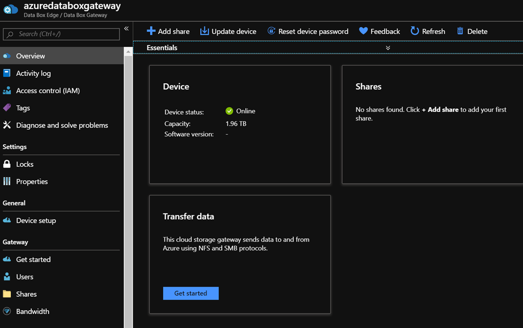 You now have access to the Azure Data Box Gateway management portal