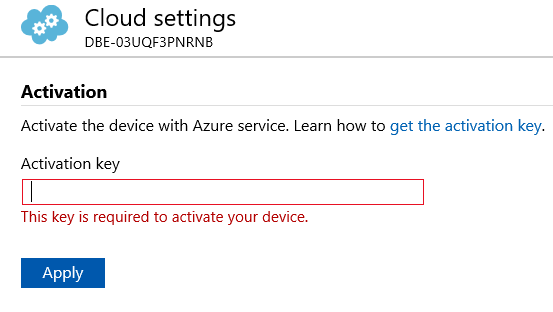 Click on the Activation link to set the configuration key you got in Step 4 from the Azure portal