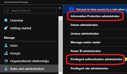 - Information Protection Administrator: to grant all Azure Information Protection (AIP) administration aspects without granting global administrator permission. This covers Azure Information Protection configuration settings, read and configure Azure Service Health (as AIP can now provides log to Logs Analytics) and support request creation from both Azure and Office 365 administration portal