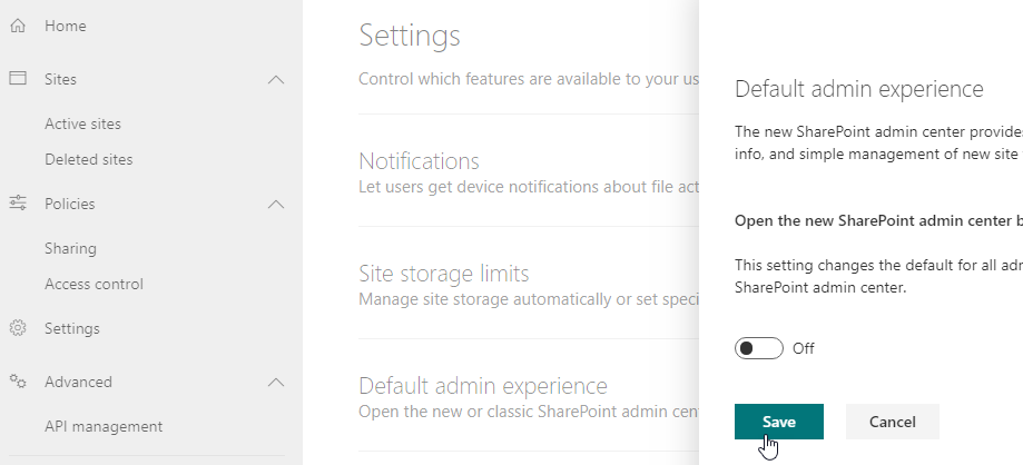 This new administration portal experience for SPO is now going to become the default administration portal for SharePoint Online.