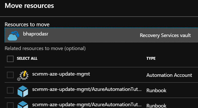 Then select all related resources and select your target – when moving to a different resource group you can directly create a new one if required.