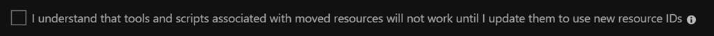 And confirm the move operation and acknowledge you may/will have to update any tools or scripts with the new resource ID