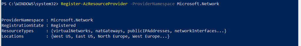 Register-AzResourceProvider -ProviderNamespace Microsoft.Network