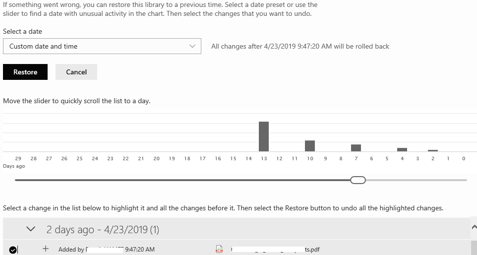 After providing ability to restore OneDrive for Business files (we are not talking about the recycle bin here), Microsoft is now providing the same feature for SharePoint Online library and Microsoft Teams.