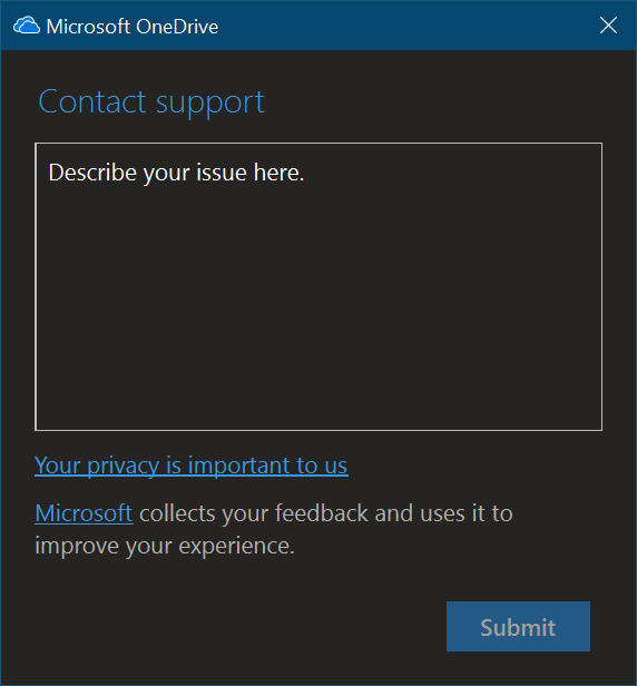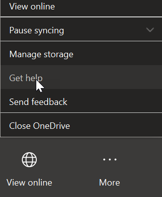 Using the More.. menu, accessible by right-clicking on the OneDrive icon in the systray, they can now open a support request to get assistance from Microsoft using the Get help