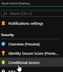 - Logon to you Azure (https://portal.azure.com) or Azure AD (https://aad.portal.azure.com) administration page and reach out to the Conditional Access configuration blade