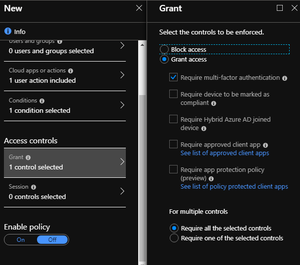 - Access Controls: Grant\Grant Access – Require multi-factor authentication