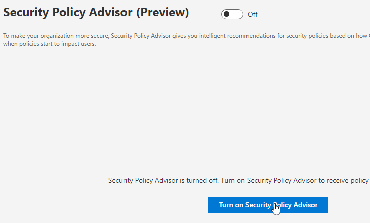 A new security tool is now available in preview in Office 365 called Security Policy Advisor.