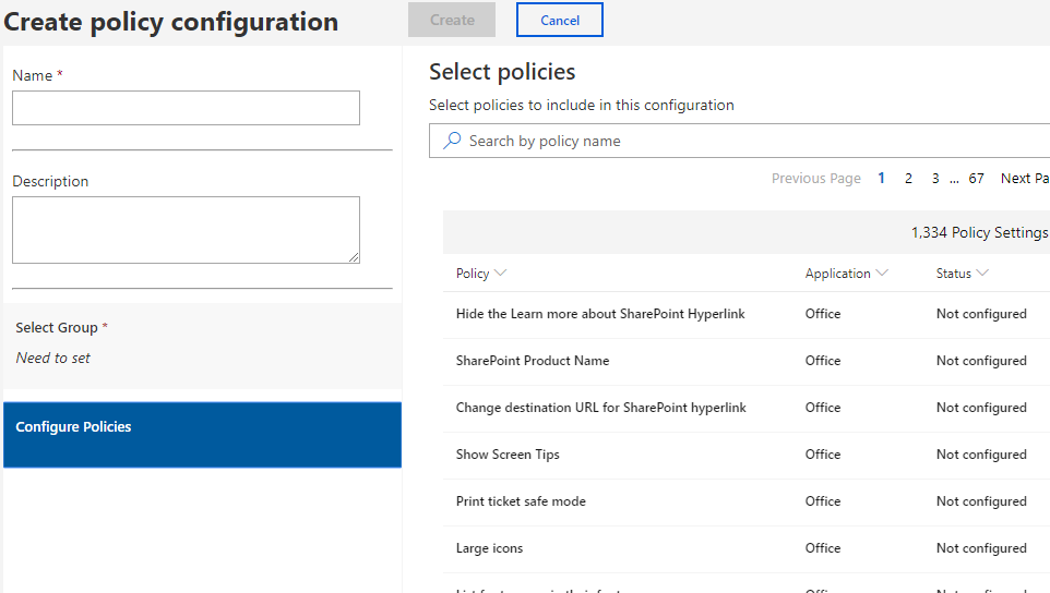 If you don’t have policies configured you will be requested to create one – policy can be applied only to groups