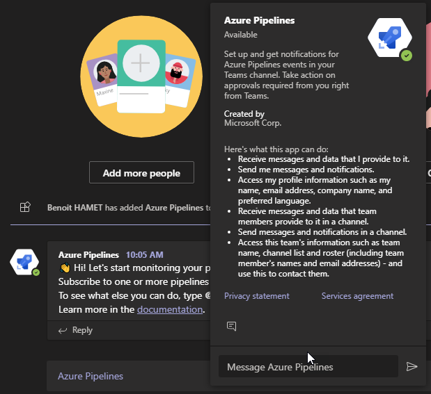 You can now connect to your Azure Pipelines from Microsoft Teams.