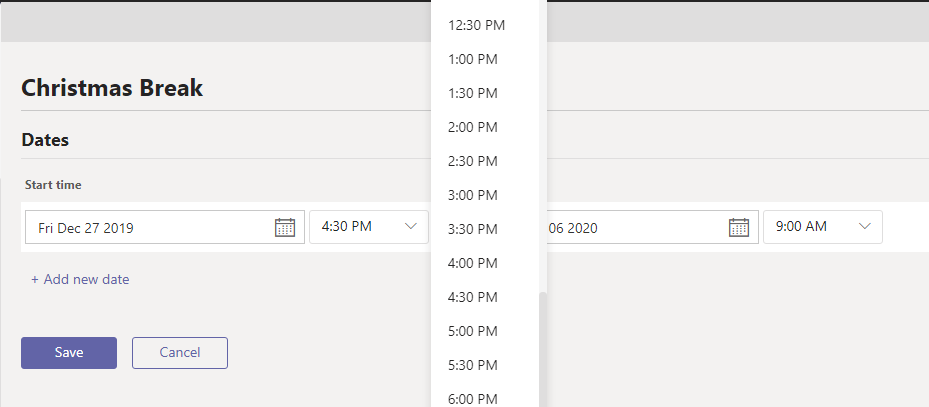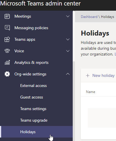 Microsoft Teams now allows you to define your organization holidays (aka the period your organization is shutting down and won’t be available for business).