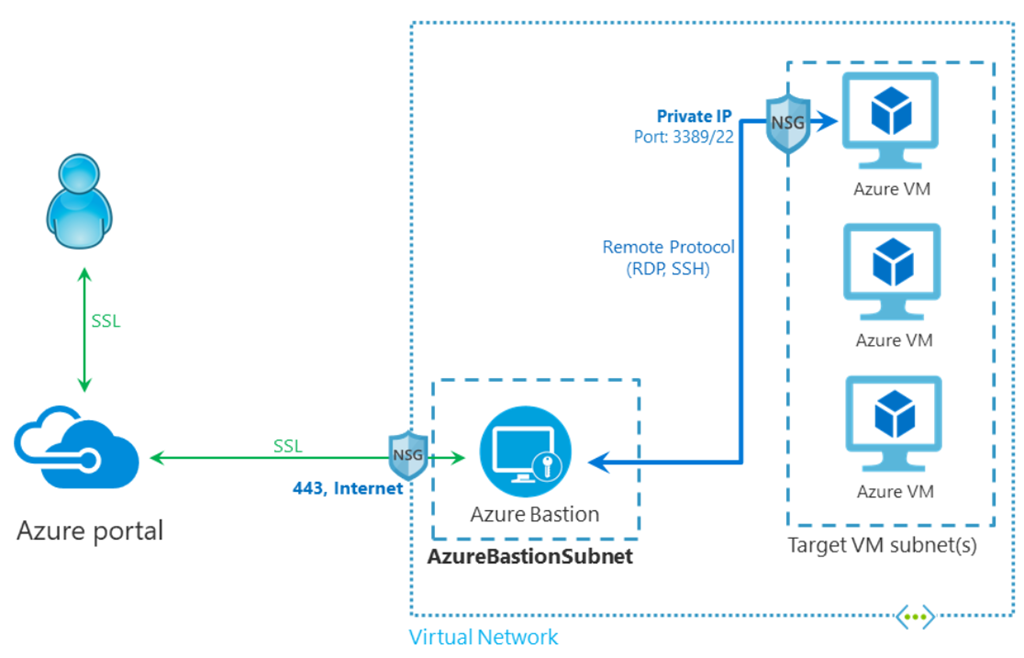 The below diagram (courtesy Microsoft) shows how Azure Bastion works