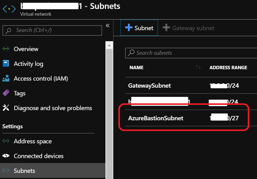 First you need to provision a new subnet within your virtual network; this new subnet must be named AzureBastionSubnet and have a /27 prefix.
