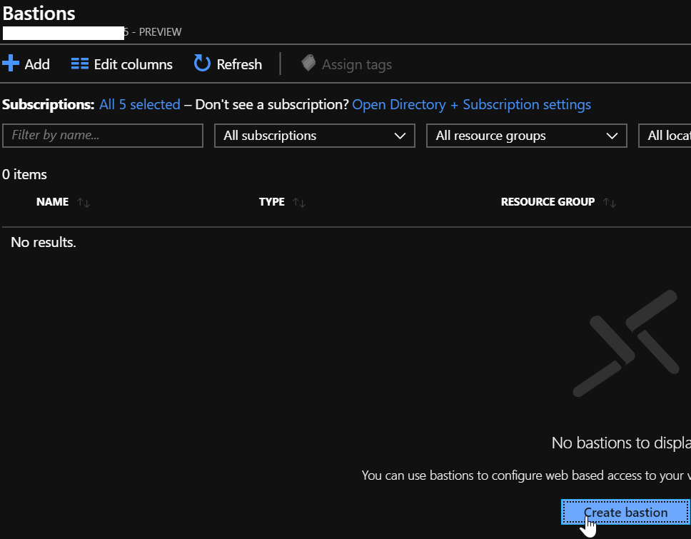 Then click Add or Create (as this will be the first Bastion service you are provisioning)