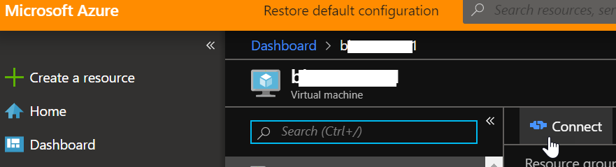 From the preview portal, search for the virtual machine you want to access on Connect