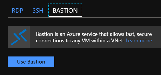 In the Connect blade which then will appear, you should see Bastion as connection option