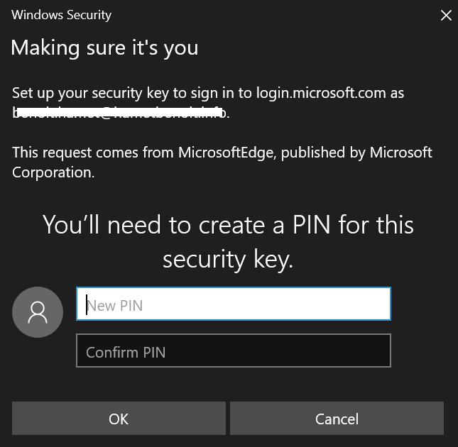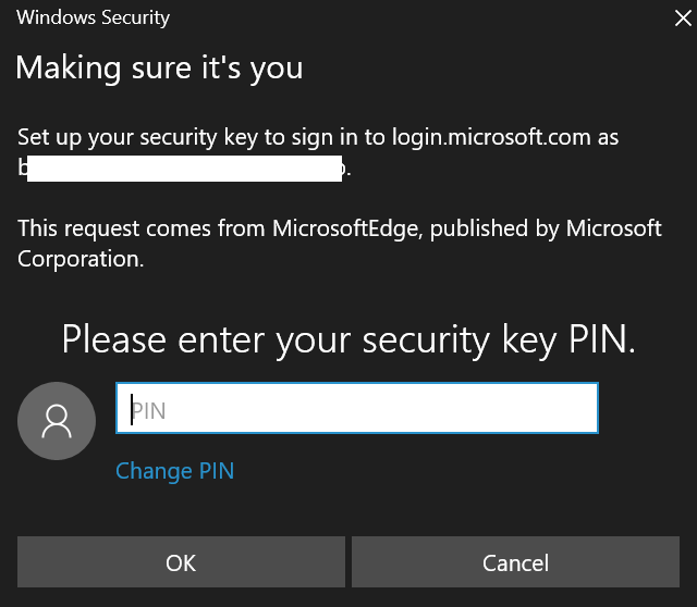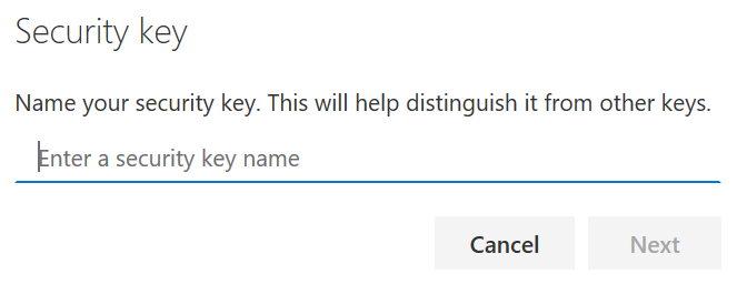 During the registration you will get prompted to set PIN and then name the key