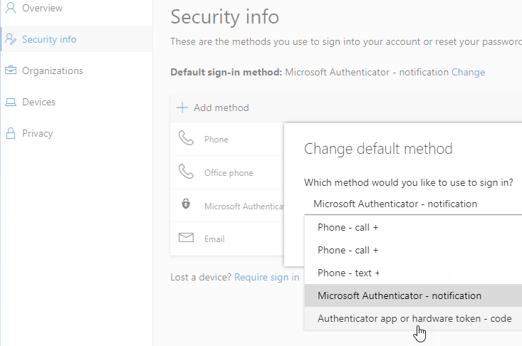 Then your users can change the default MFA method to use the new method