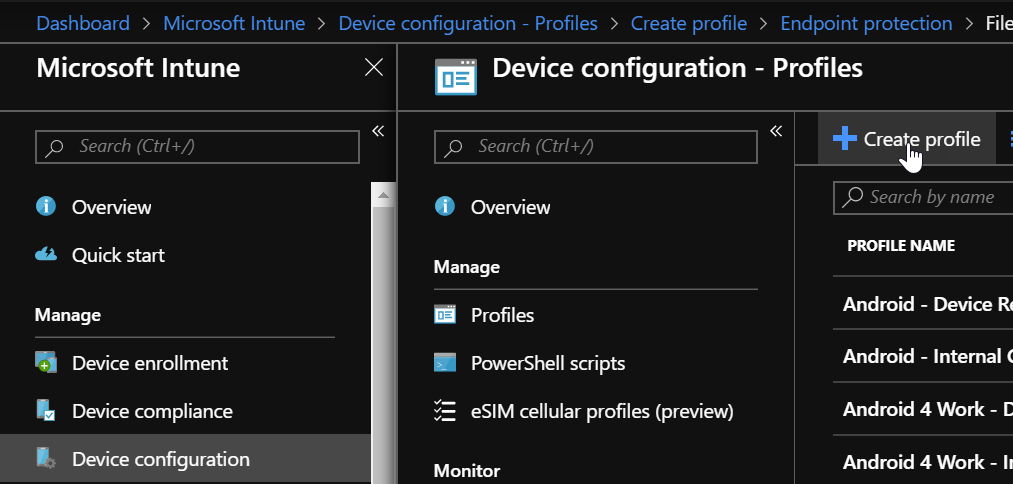 To start using it connect to you Azure portal (https://portal.azure.com) or Device Management portal (https://devicemanagement.microsoft.com) and reach out the Device configuration\Profiles blade to create a new device profile as below: