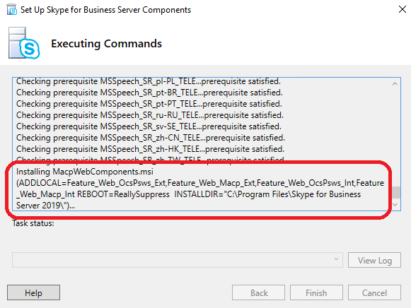 You can check if the installation has been completed by checking the Skype for Business web sites in IIS to see if the MACP virtual directory is present