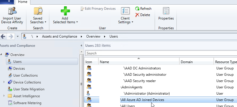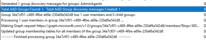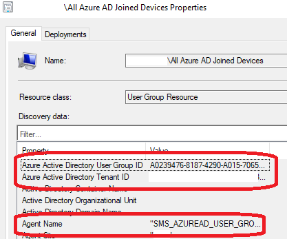 Below an example of a successful discovery in the log and then in the Assets and Compliance\Users workspace – the Domain column is empty Azure AD groups and you can see in the properties the Agent used (SMS_AZUREAD_USER_GROUP_DISCOVERY_AGENT) and the tenant ID and group ID from Azure AD.