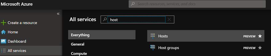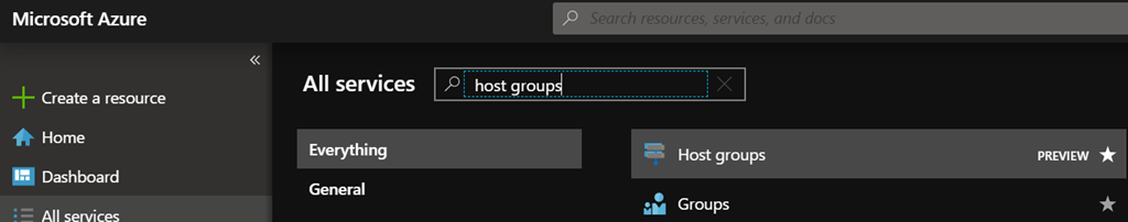 To start using it, logon to your Azure portal (https://portal.azure.com) and search for Host Groups (or you can also access it directly using this URL https://aka.ms/ADHMainCTA)