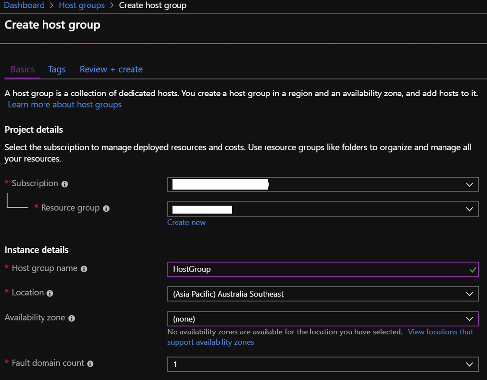 When creating a host group you can also availability zone