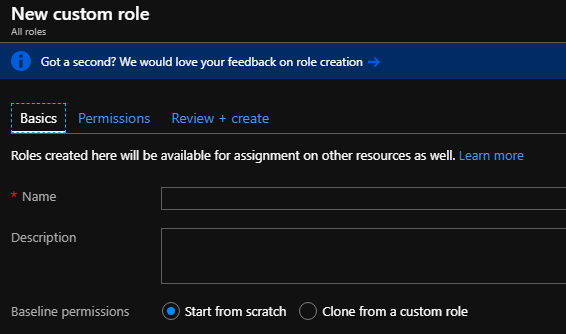 NOTE if you already have create one custom role, you will be able to reuse it using the clone from a custom role option