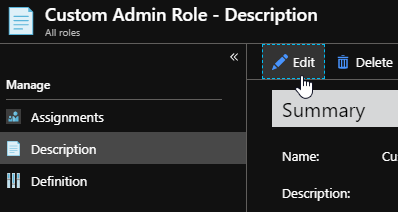 - If you need you can edit it by accessing the Description blade and hit the Edit button